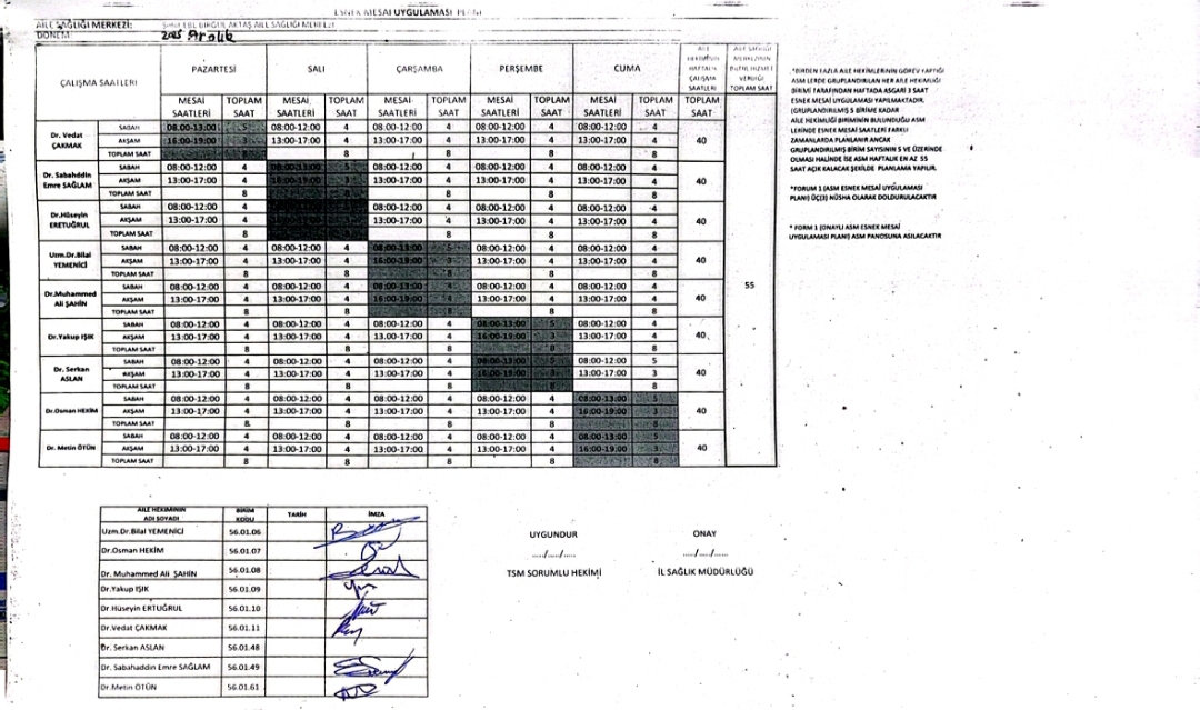 AYI ÇALIŞMA SAATİ (Esnek Mesai